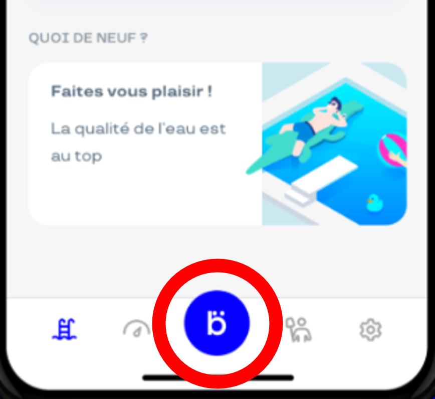- Press the 'B' Button: Start by pressing the 'B' button shown on the home screen of your Blueriiot Pool & Spa Assistant app. This initiates the process of connecting with your analyzer.